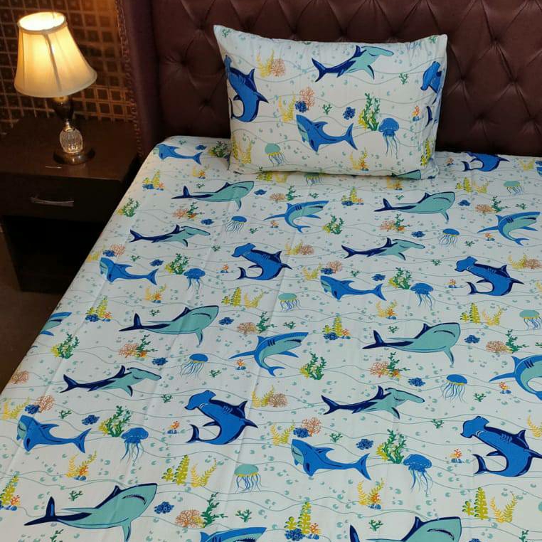 Whales Bedsheet White Base NBJ | Dukan.pk